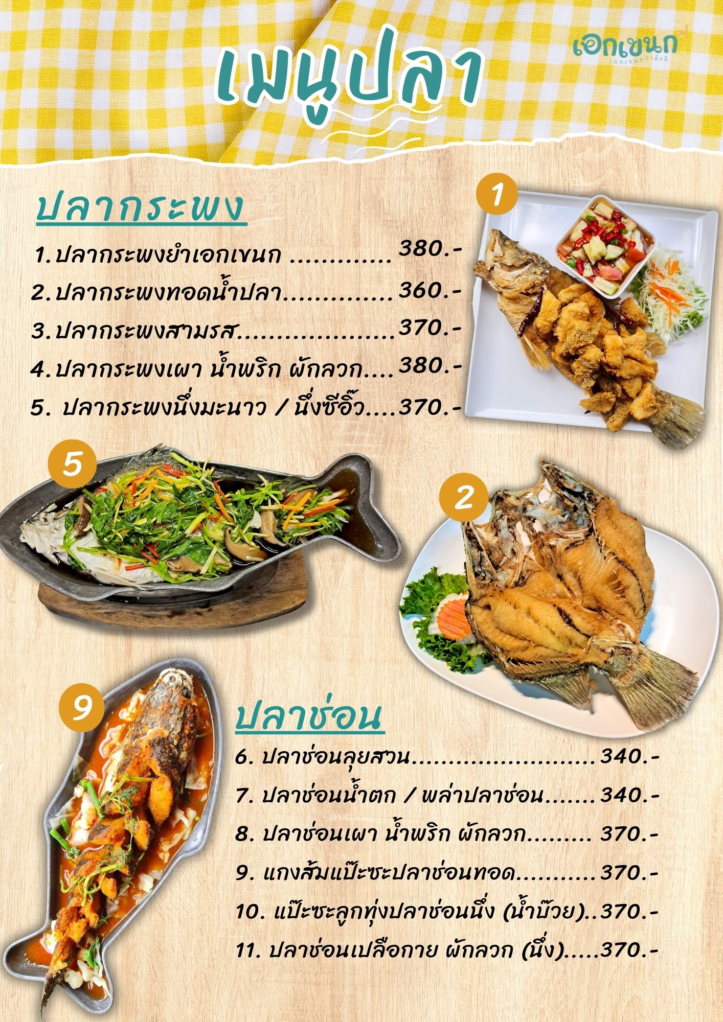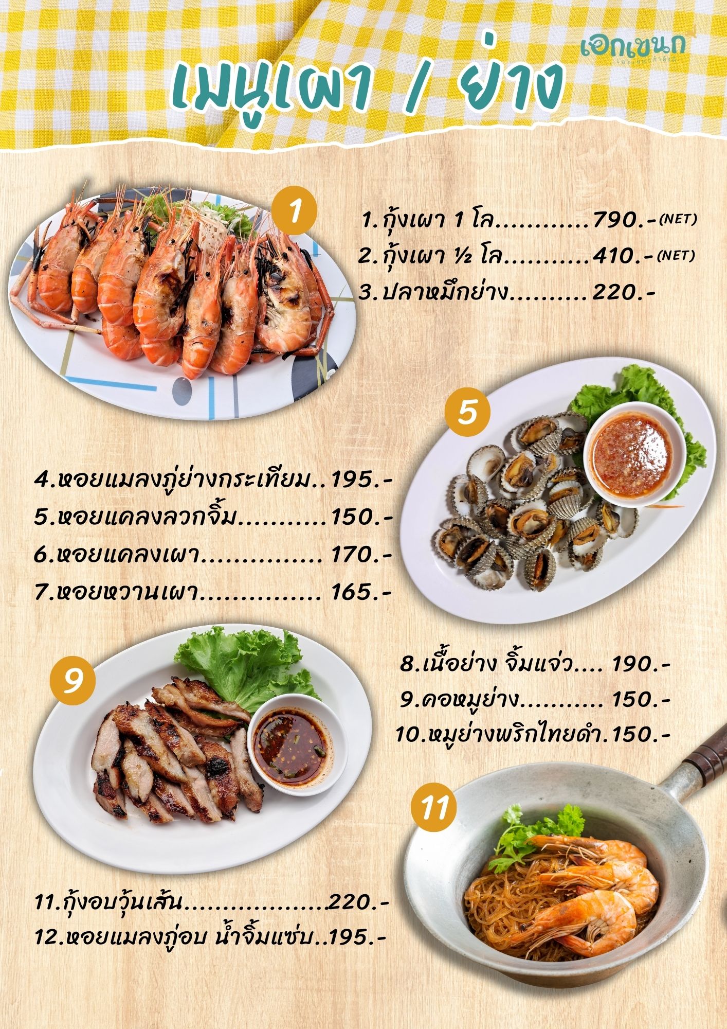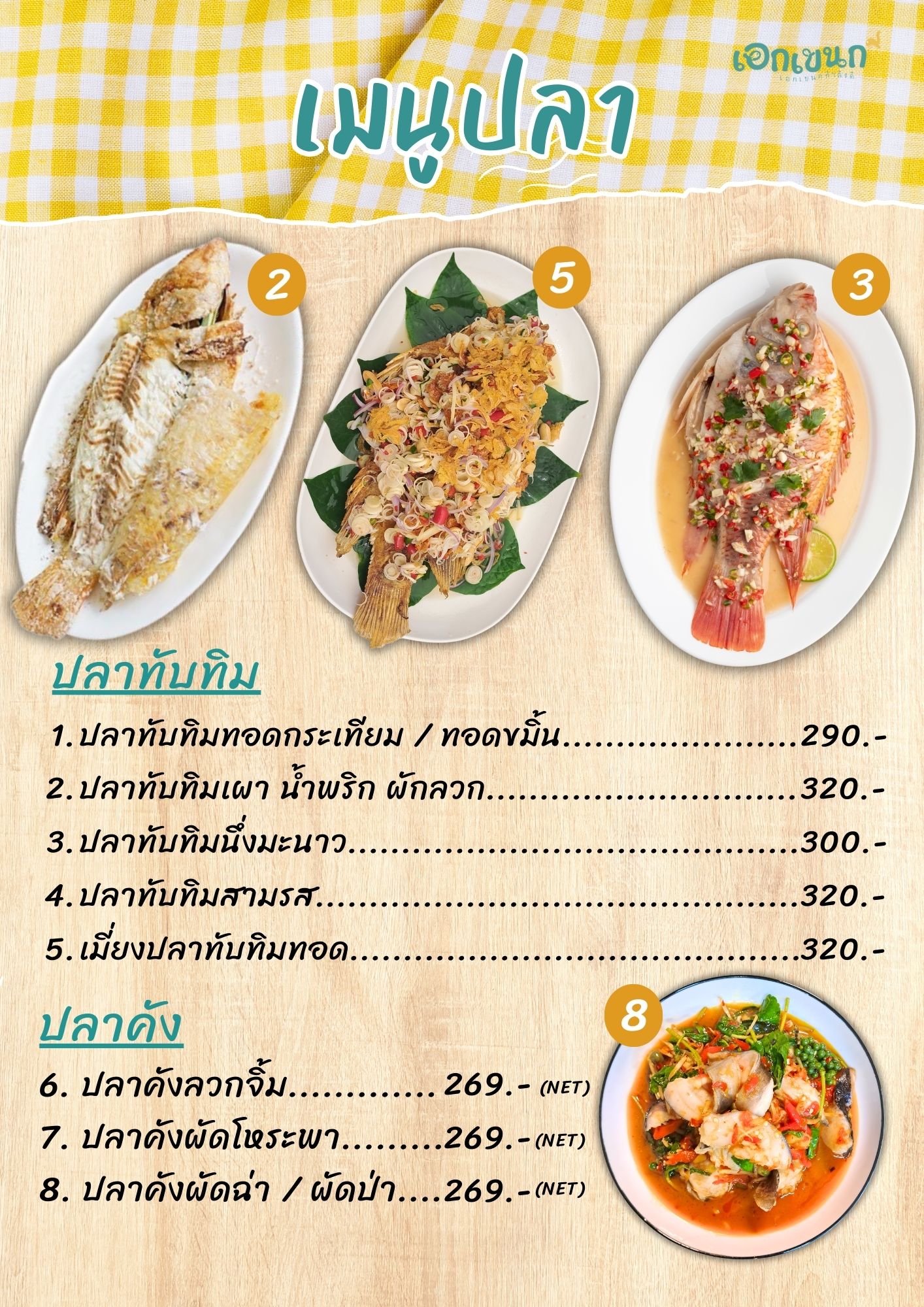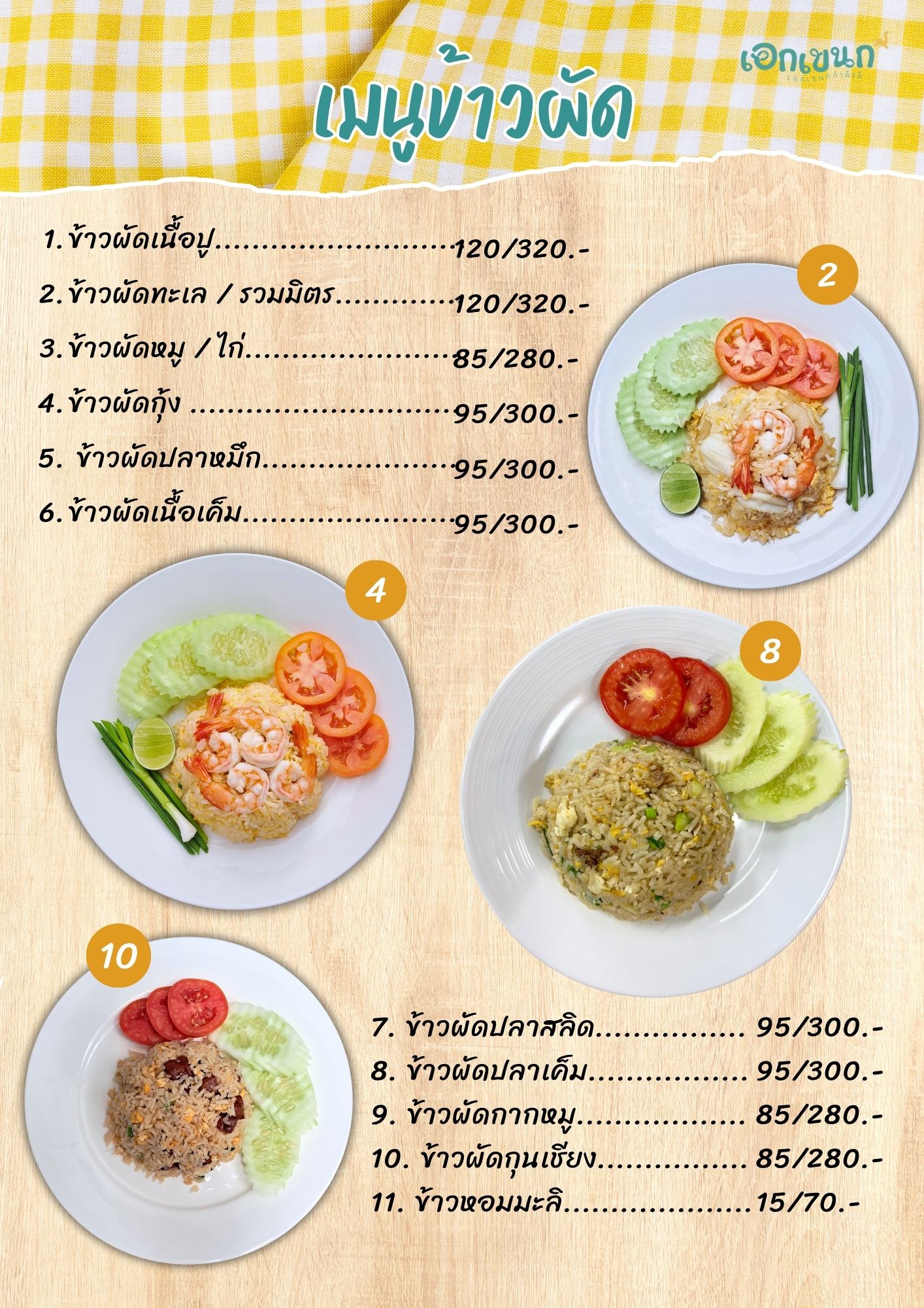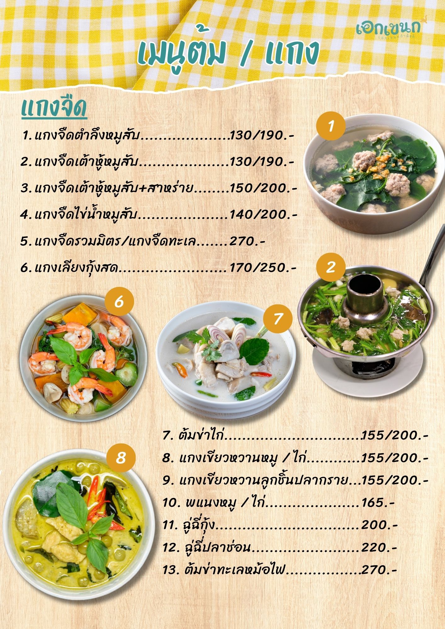 เมนูจานเด็ดจากทีมงานครัวที่มีประสบการณ์กว่า 20 ปี การคัดสรรวัตถุดิบที่ละเอียดรอบคอบเป็นที่มาของความสดอร่อยในอาหารทุกจานของบ้านเอกเขนก กรณีจองห้องจัดเลี้ยง หรือคาราโอเกะ กรุณาสั่งอาหารล่วงหน้าอย่างน้อย 1 วัน และระบุชื่อผู้จอง, เบอร์โทร, วันที่ใช้บริการ ลงมาในเอกสาร FAX เพื่อความสะดวกรวดเร็วค่ะ เบอร์ FAX. 02-501-7899