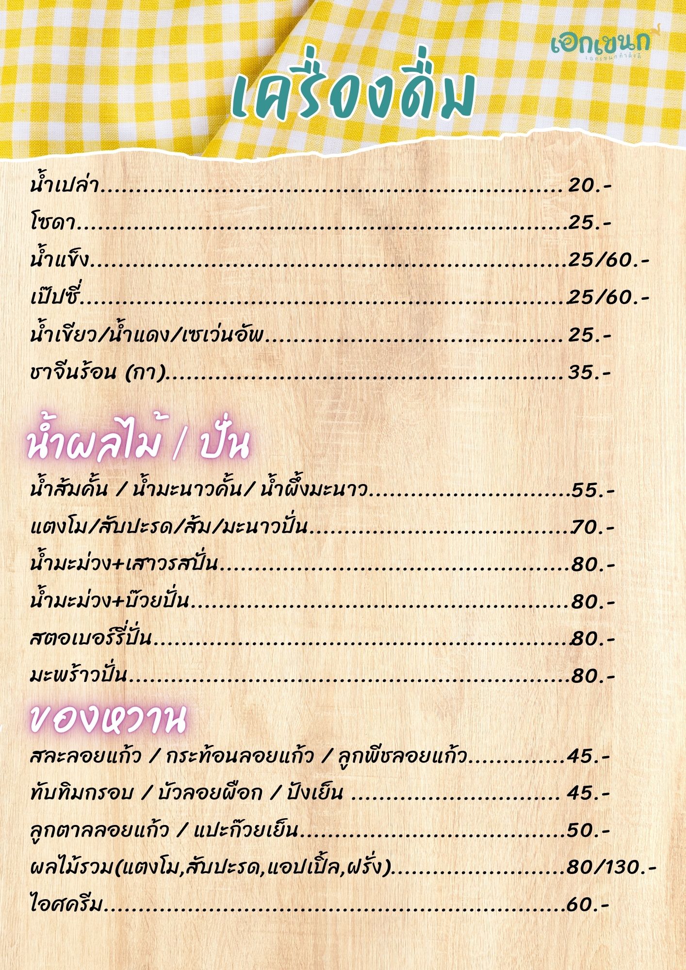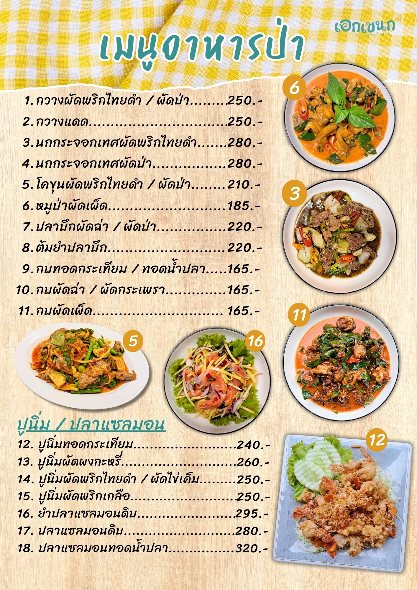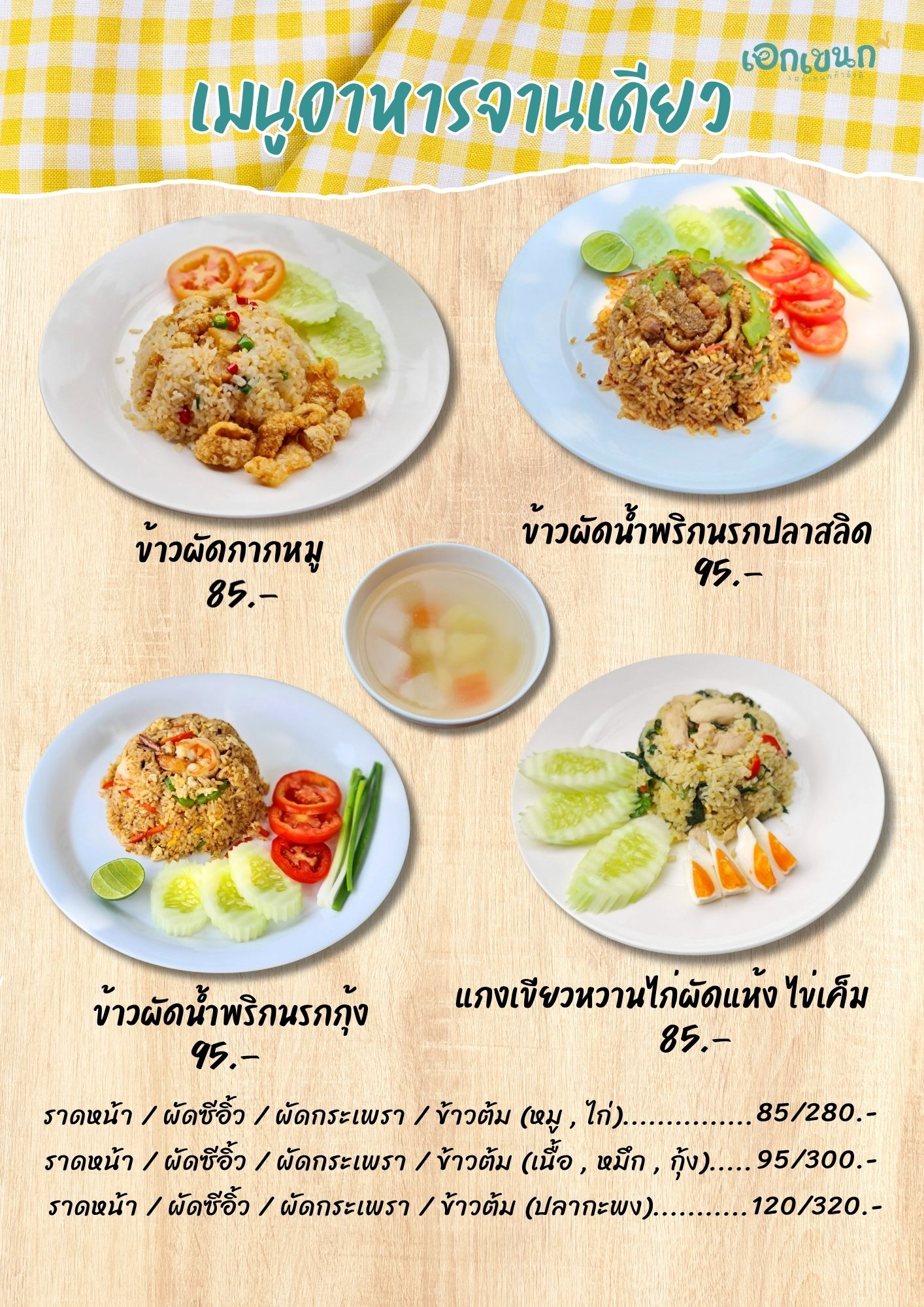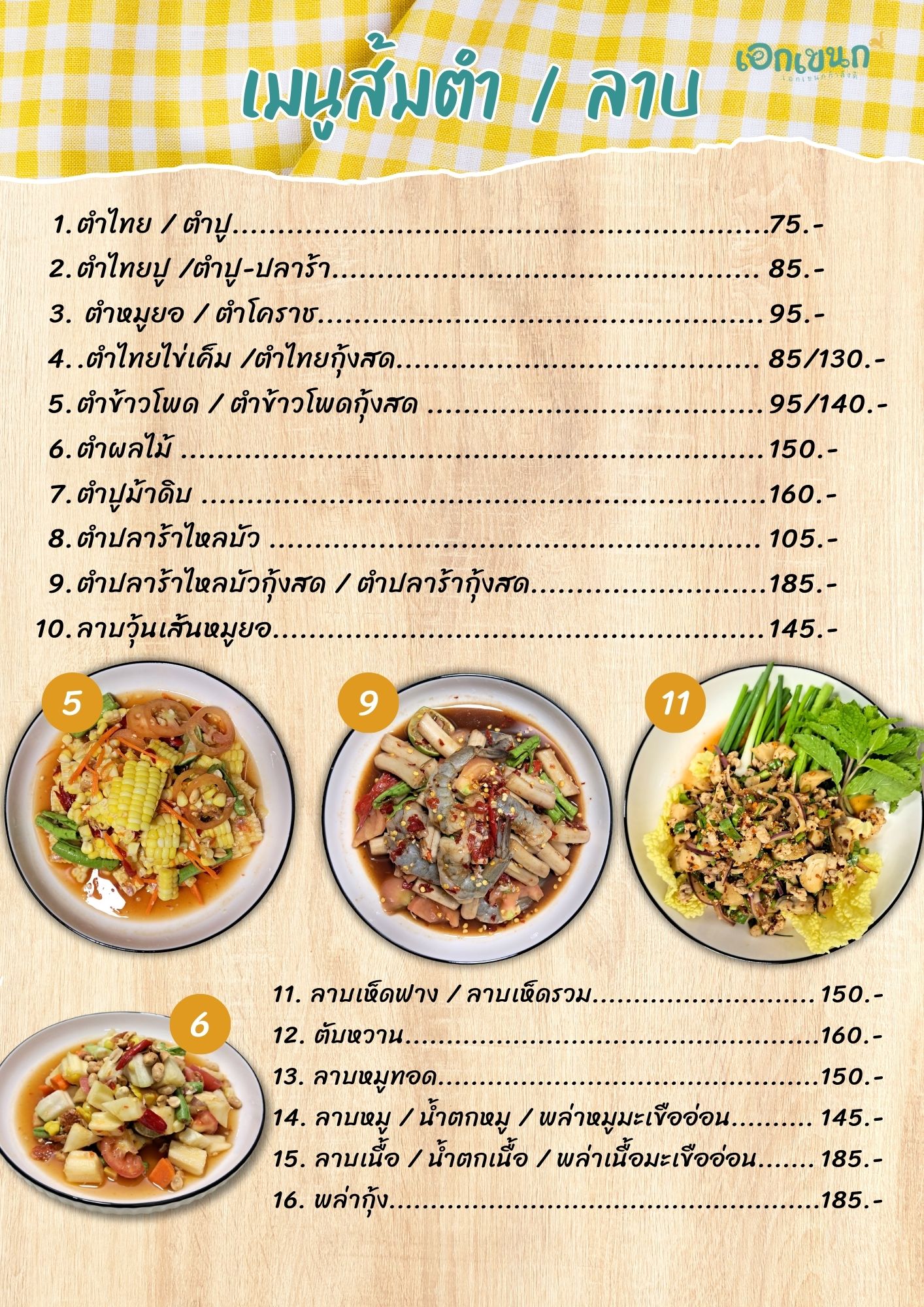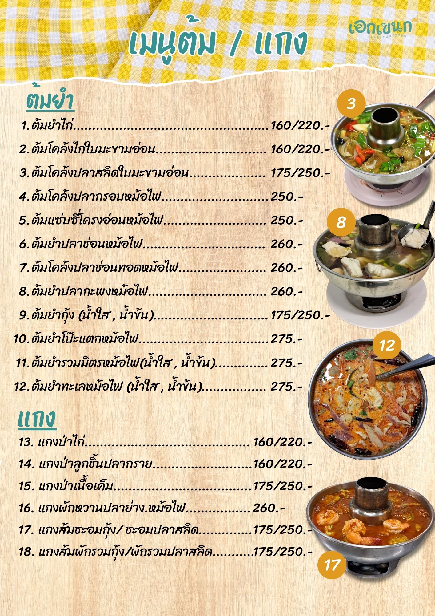 เมนูจานเด็ดจากทีมงานครัวที่มีประสบการณ์กว่า 20 ปี การคัดสรรวัตถุดิบที่ละเอียดรอบคอบเป็นที่มาของความสดอร่อยในอาหารทุกจานของบ้านเอกเขนก กรณีจองห้องจัดเลี้ยง หรือคาราโอเกะ กรุณาสั่งอาหารล่วงหน้าอย่างน้อย 1 วัน และระบุชื่อผู้จอง, เบอร์โทร, วันที่ใช้บริการ ลงมาในเอกสาร FAX เพื่อความสะดวกรวดเร็วค่ะ เบอร์ FAX. 02-501-7899